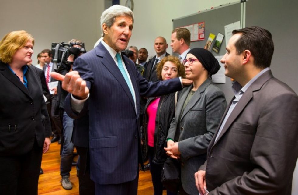 "This step is in keeping with America's best tradition as a land of second chances and a beacon of hope," Kerry said. Earlier, he and Steinmeier met with a group of refugees around a conference table on the wooded, lakeside resort-style campus of the foreign ministry's education center outside Berlin.