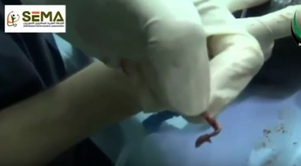 Video of the dramatic delivery was posted on Facebook by the Aleppo City Medical Council. (warning – graphic medical scene)