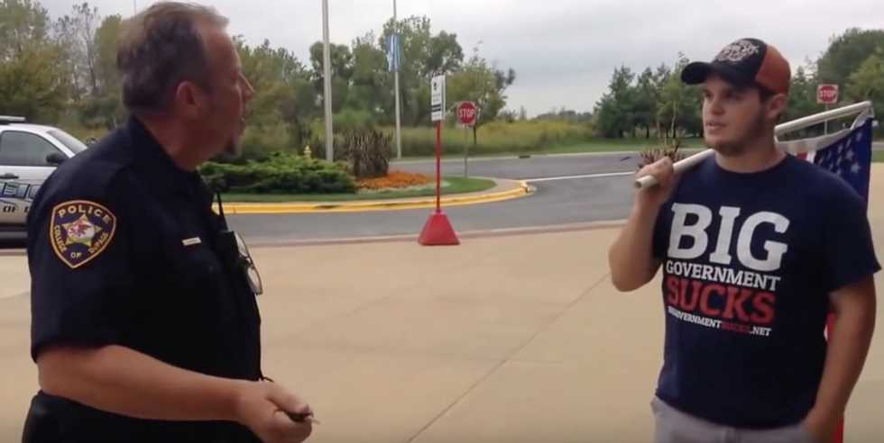 "It’s not free speech, ma’am," the officer said. "Nobody’s stopping you from free speech, but you can’t solicit out here, and basically you are — you’re soliciting your opinions. Okay? And you need to go get a permit."