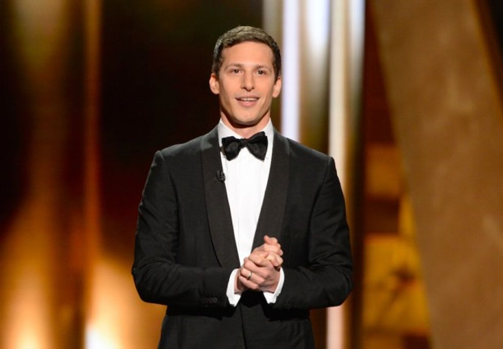 IMAGE DISTRIBUTED FOR THE TELEVISION ACADEMY - Andy Samberg speaks at the 67th Primetime Emmy Awards on Sunday, Sept. 20, 2015, at the Microsoft Theater in Los Angeles. (Photo by Phil McCarten/Invision for the Television Academy/AP Images)