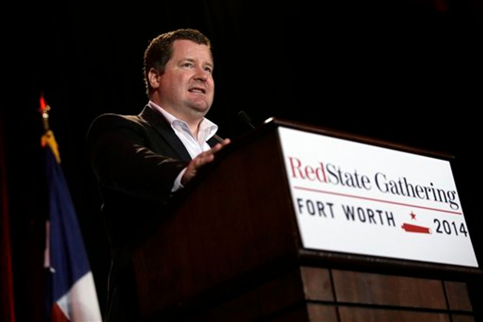 RedState Editor-in-Chief Erick Erickson makes comments to attendees at the 2014 Red State Gathering, Friday, Aug. 8, 2014, in Fort Worth, Texas. (AP Photo/Tony Gutierrez)
