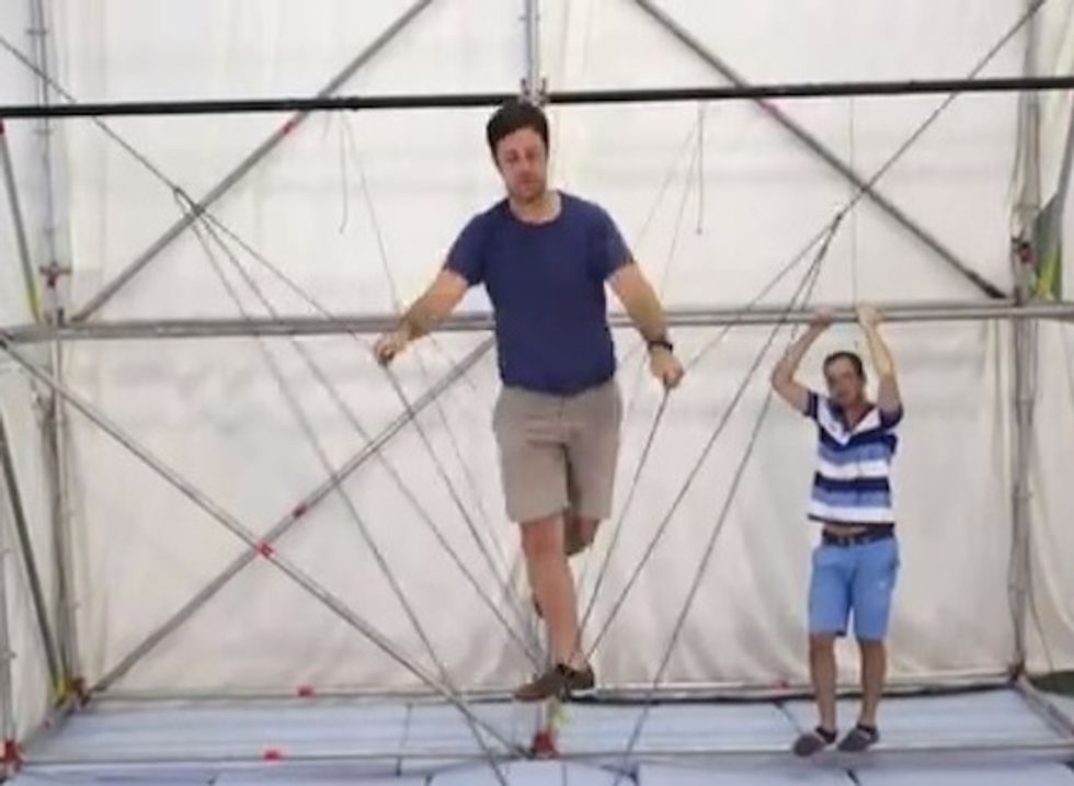 Watch the construction of the bridge and people testing it out at the end: