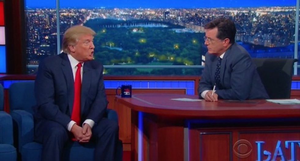 Host Stephen Colbert said he was tossing a "big fat meatball" to Trump, arguing that if the Republican frontrunner hit it out of the park on his show, it's likely he'd never have to answer the question again.