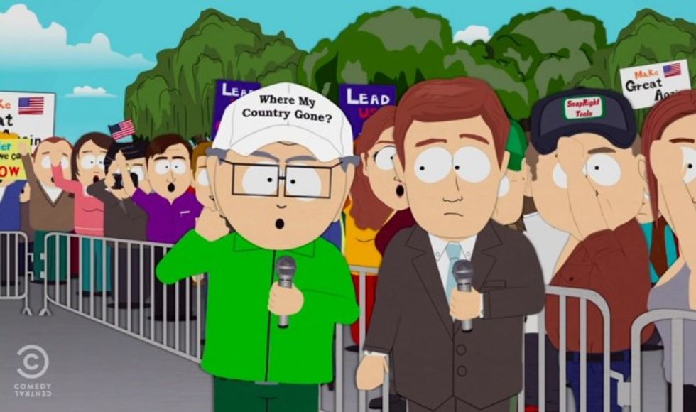 — Juan Valdez (@Mormon_Scholar) September 24, 2015This is why I don't watch South Park. Shows Trump being brutally raped to death https://t.co/yKiX4NhFcf @ScotsFyre @PolitiBunny @Richzeoli