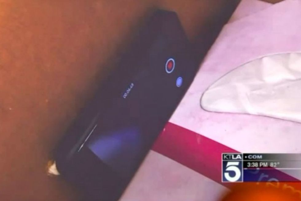 Peering inside, she said she discovered an iPhone pressed against the hole recording video. Sabori told KTLA, "My heart dropped."