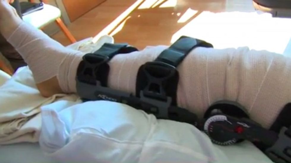 "I stepped up on a log, there were two logs, and my foot slipped in between them," he told KTVB. "My momentum went forward, and it snapped the two bottom bones in my right leg — the tib and the fib — in half."