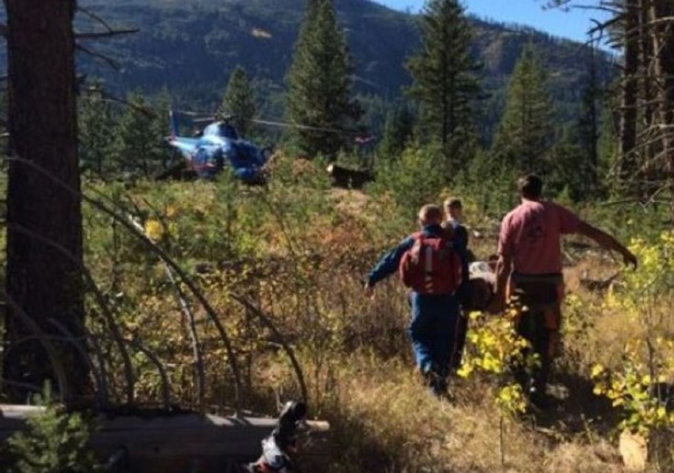Rescuers got to Sain and stabilized him while others used chainsaws to clear an area for a helicopter, which flew him to a Boise hospital for surgery on his right leg.