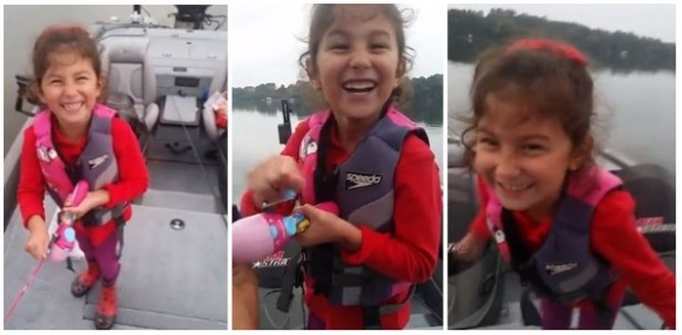 "Yes, yes, yes, yes, yes!" Avery shouted, the father-daughter pair eventually dissolving into laughter in their excitement over the fish.