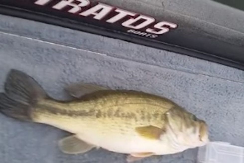 "What do you think? Avery, what do you think?" he asked as she examined her fish, which the video description said was a 5-pound bass.