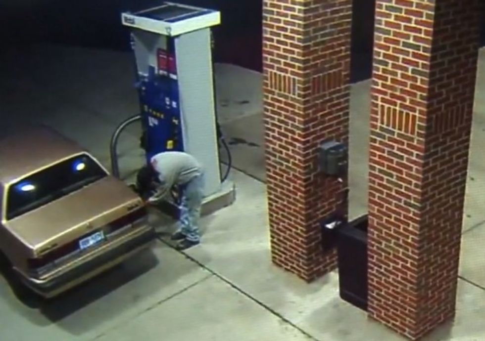 That's more than you can say for a motorist who was about ready to pump gas at the Center Line station, just north of Detroit, on Tuesday morning.