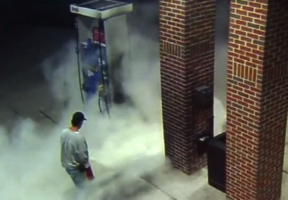 Inside the store, Adams quickly activated the pump's kill switch and called the fire department, WJBK-TV reported.