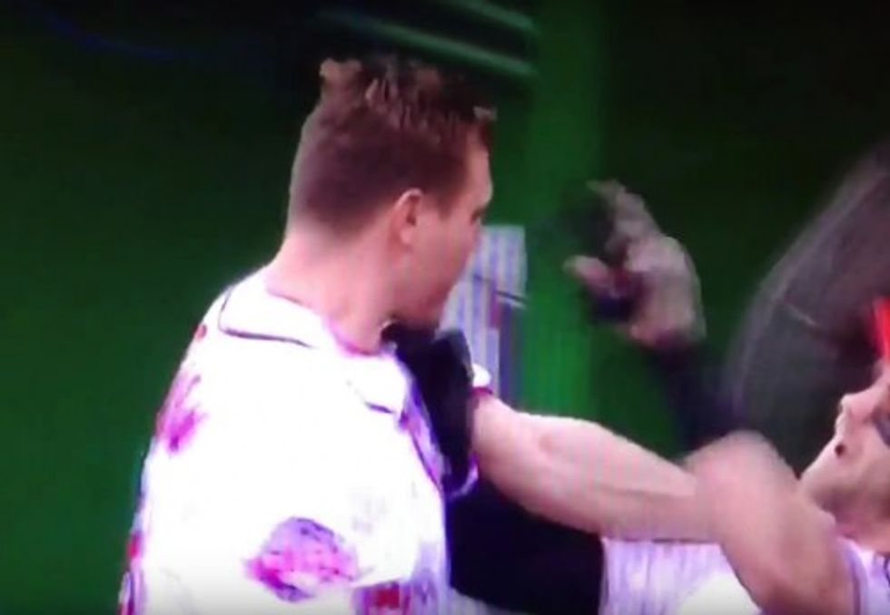 WASHINGTON (TheBlaze/AP) — NL MVP front-runner Bryce Harper and Nationals closer Jonathan Papelbon got into a dugout fight a day after Washington was eliminated from playoff contention, tangling in the eighth inning Sunday of a 12-5 loss to last-place Philadelphia.
