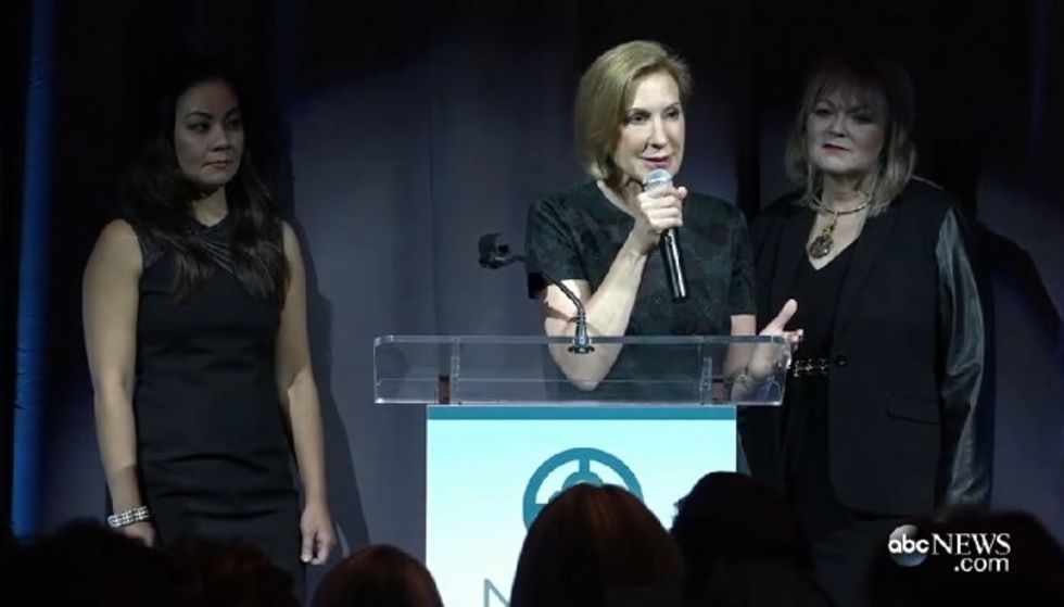 After someone in the audience shouted something about Donald Trump to Fiorina, ABC News said, she quipped back, "OK, Trump, Hillary [Clinton], it could've been lots of people."