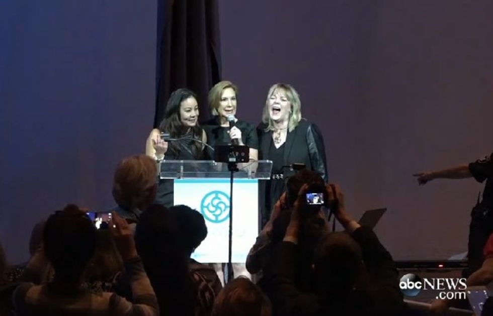 As the laughter and cheers grew, Fiornia added some levity while directing thanks to the two women who had been standing to her right and left.