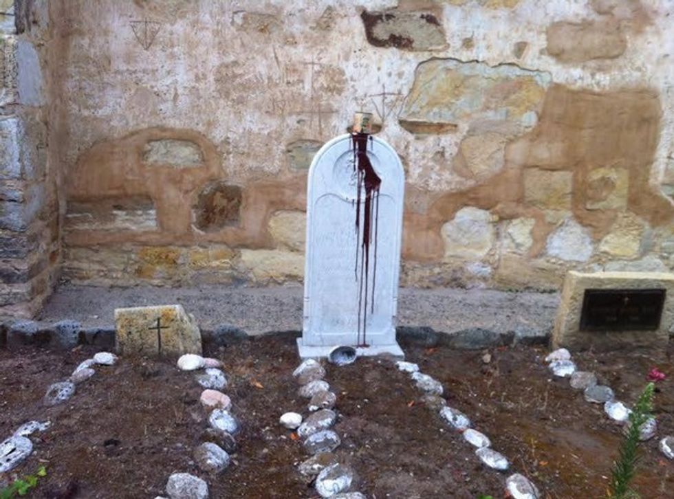 CARMEL, Calif. (TheBlaze/AP) — Police in Northern California say vandals defaced a statue of Father Junipero Serra at the Carmel Mission, where the remains of the recently canonized missionary are buried.