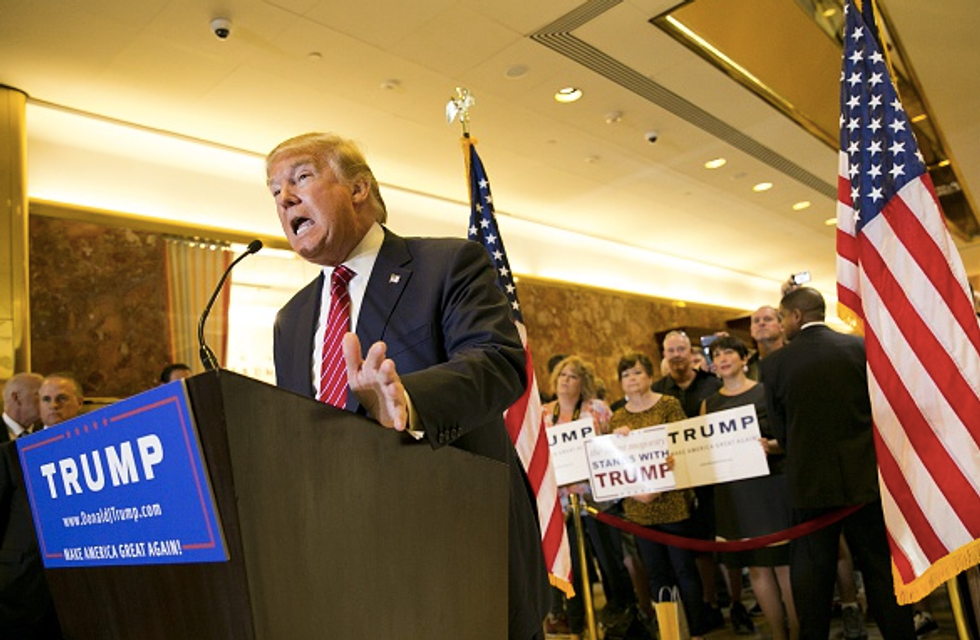 Republican presidential hopeful Donald Trump announces his tax plan during a press conference at Trump Tower in New York on September 28, 2015. (DOMINICK REUTER/AFP/Getty Images)