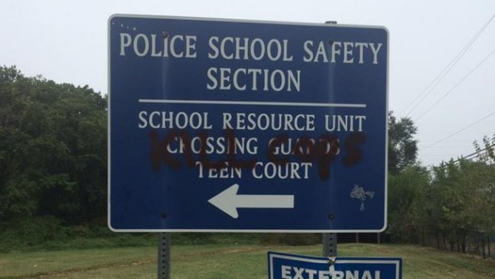 The Anne Arundel County Police learned of the vandalism acts on Tuesday morning around 8:00 a.m. Three of the messages were found on the outside walls of a shopping center and read "Killing AAC Cops Coming Soon" while another, found on a nearby school safety sign, read, "Kill Cops," the Baltimore Sun reported.