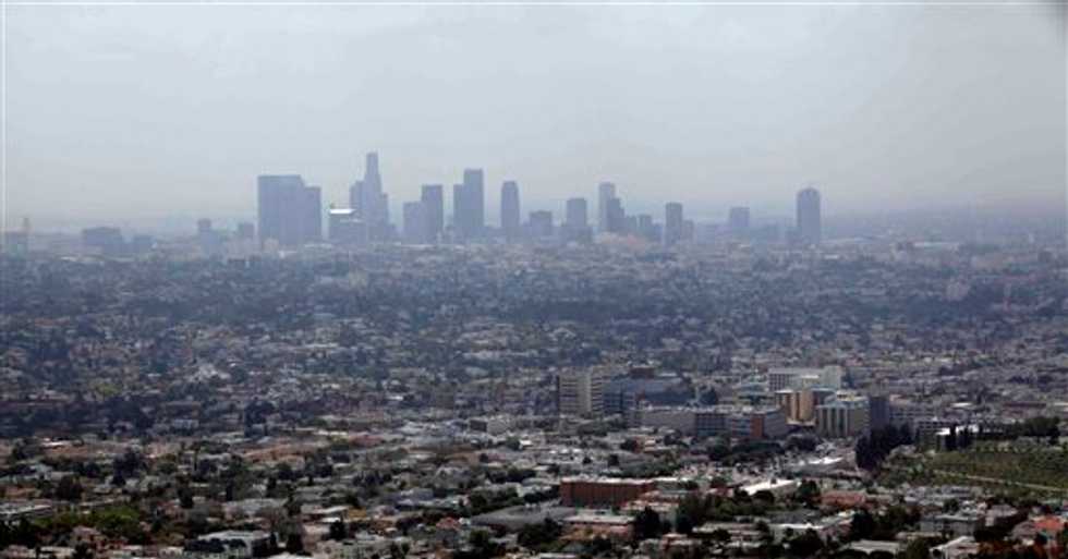 This April 28, 2009 file photo shows smog covering downtown Los Angeles. (AP/Nick Ut)