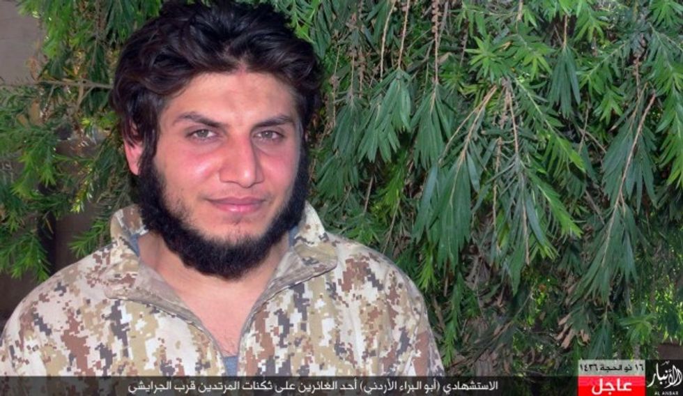 This image posted on a militant website on Sunday, Oct. 4, 2015, which has been verified and is consistent with other AP reporting, purports to show Mohammed Dalaeen, a son of Jordanian parliament member Mazen Dalaeen. (Militant website via AP)