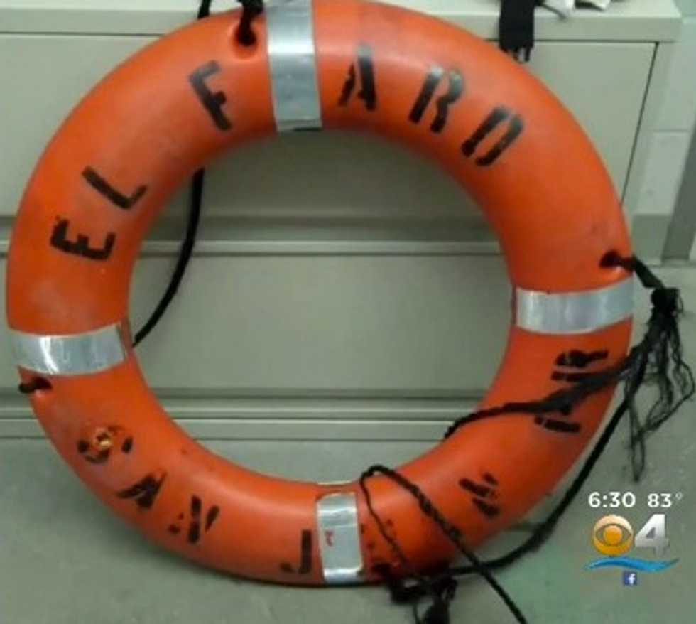 The search Sunday yielded a container, pieces of another container and a life ring from the El Faro. An oil sheen also was spotted.