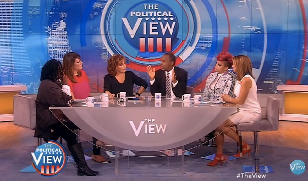 Famed neurosurgeon and 2016 presidential contender Dr. Ben Carson faced-off against the women of "The View" on Tuesday after he decried abortion and said that "we're killing babies all over the place."