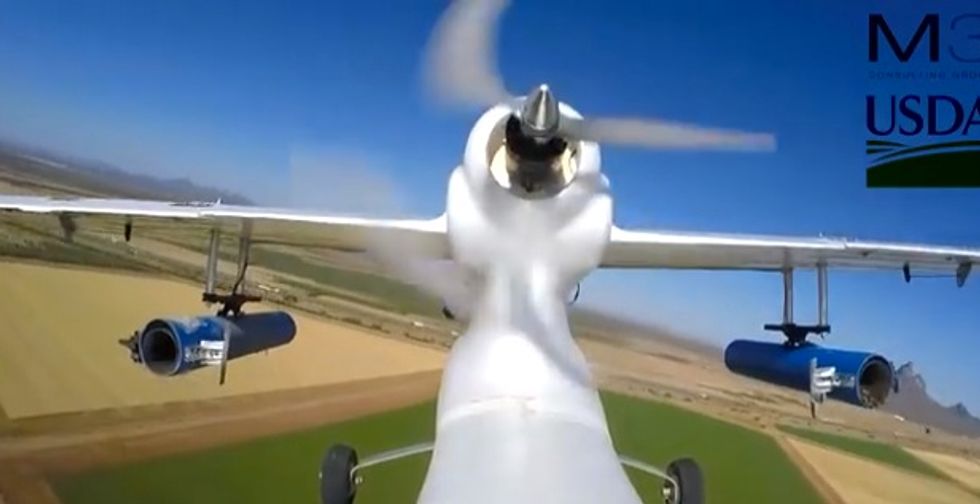 "We are investigating using remotely piloted aircraft capable of eliminating small-scale outbreaks as soon as they are detected," Osama El-Lissy with the USDA said in the video demonstrating the process.