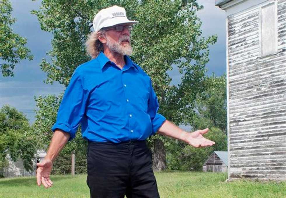 In this Aug. 26, 2013 file photo, white supremacist Craig Cobb stands in an empty lot he owned in Leith, N.D. (AP/Kevin Cederstrom)