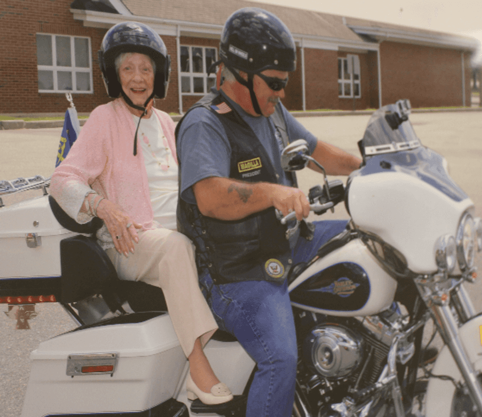 Meet the 99-year-old Army wife who rides Harleys and crochets American flags