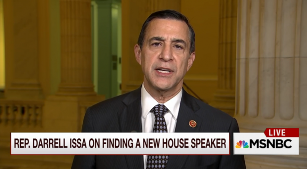 Rep. Darrell Issa (R-Calif.) confirmed he could possibly be a candidate for speaker of the U.S. House on “Morning Joe” Friday, but he also took a surprising shot at Rep. Jason Chaffetz (R-Utah). Chaffetz, who is currently running for speaker, recently took over Issa’s job as chairman of the House Oversight Committee.