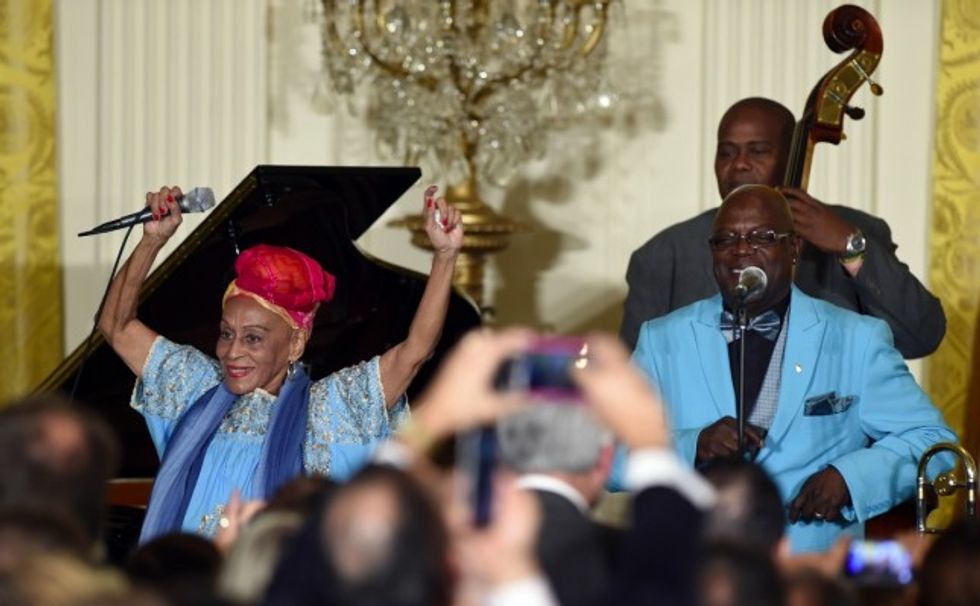 Members of Orquesta Buena Vista Social Club perform at a reception in the East Room of the White House in Washington, Thursday, Oct. 15, 2015. (AP Photo/Susan Walsh)