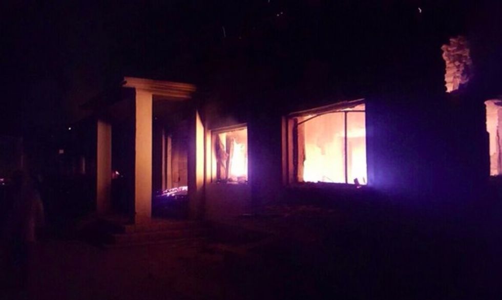 The burned Doctors Without Borders hospital is seen after explosions in the northern Afghan city of Kunduz, Saturday, Oct. 3, 2015. (Image source: Médecins Sans Frontières via AP)\n