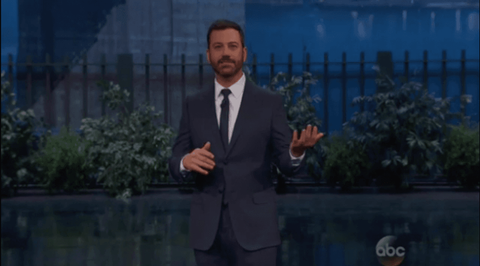 "I'm dying to find out what this major political commitment was. Usually it means he had to go on CNN and call someone an idiot or something," Kimmel said. "Why did he cancel? We told him there were cameras here, right?"