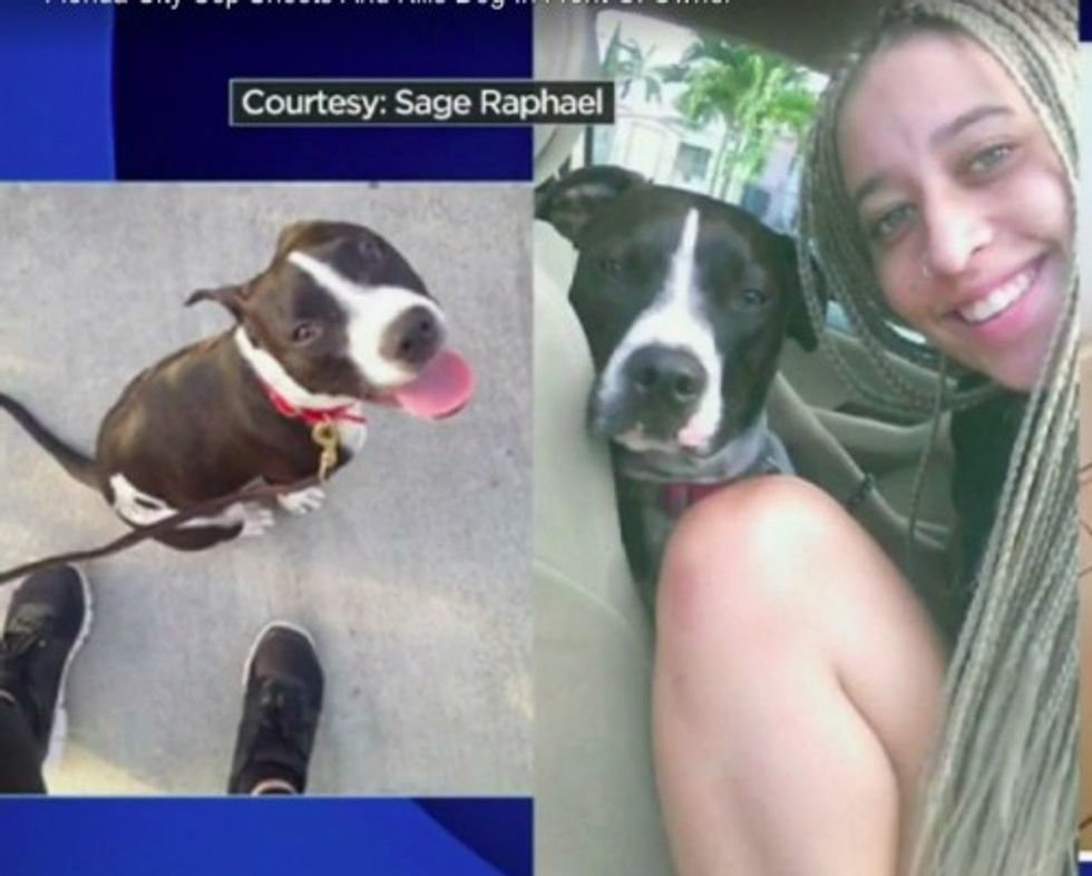 “I was about to grab her," Sage Raphael, Palacios’ daughter — the other owner of the dog — told the station. "I had her, and two seconds later, it’s three gunshots."