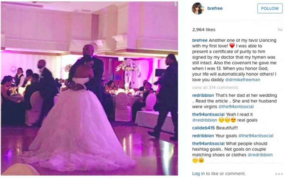 "On the 10th of May 2006, I, Brelyn Freeman, made a vow to glorify God in my body and spirit which are God's because I have been bought with a price," the document read. "I have kept this commitment and present this certificate to my father Dr Michael A. Freeman to show how I have honored God and my earthly father in my body by maintaining my purity and that my hymen is intact on this 10th day of October 2015."