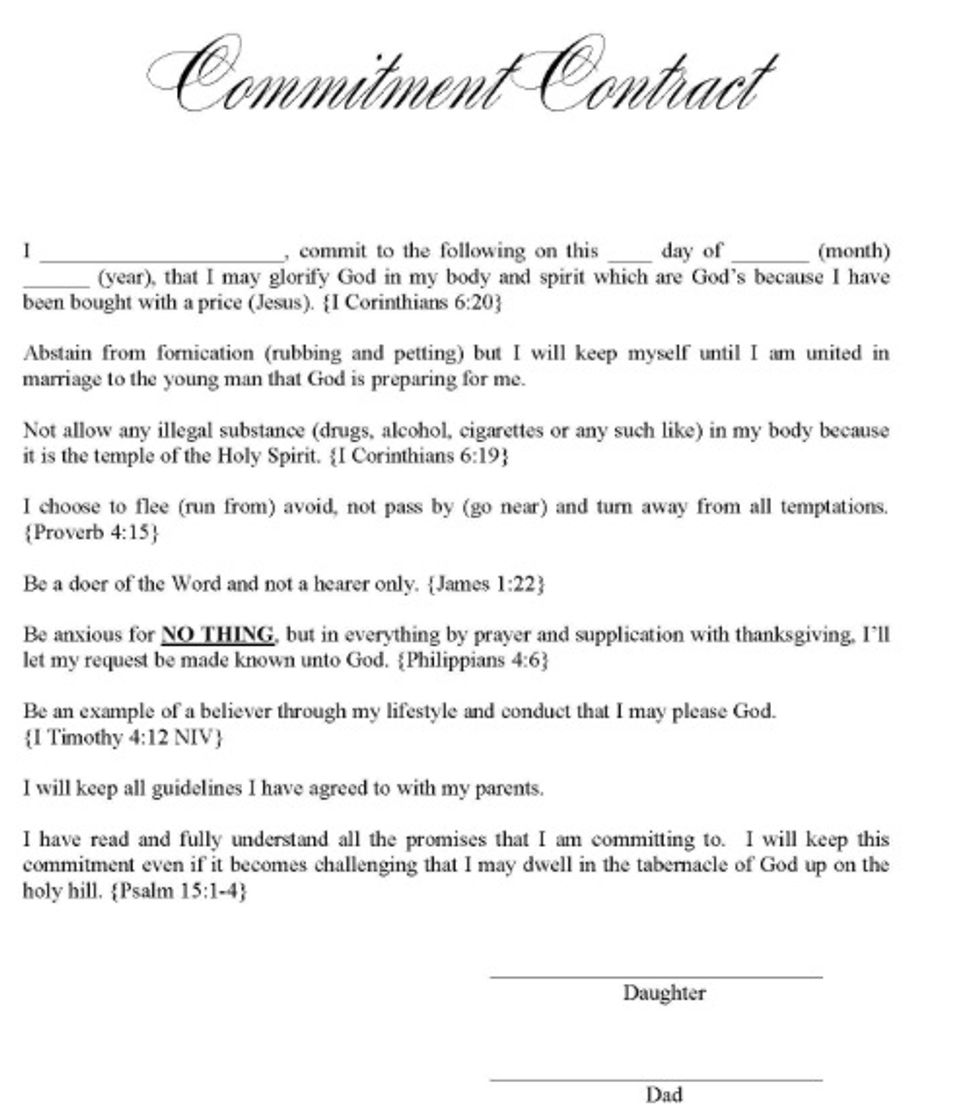 The Bowmans have included a copy of the commitment contract on their website that other people wishing to abstain until marriage can download and sign: