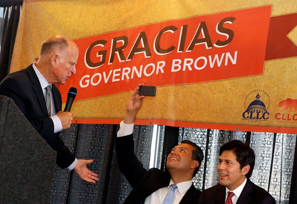 LOS ANGELES, CA-JUNE 20, 2014: Gov. Jerry Brown while addressing members of the Califirnia Latino Legislative Caucus and community members, during a community celebration. (Mel Melcon/Los Angeles Times)