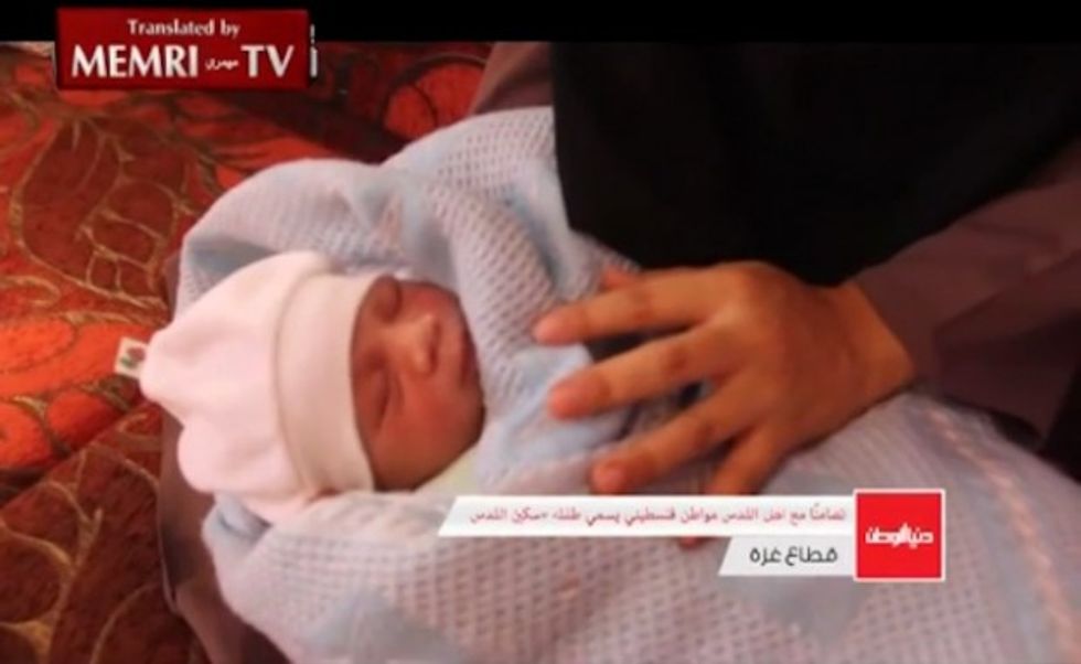 "Allah has given me a new baby, and I’ve named him 'Knife of Jerusalem' after the intifada of the knives because we are now witnessing a new kind of revolution," Mohammed Abu Shebika, the child's father, said, adding that he and his wife had selected the name “in support of the blood of the martyrs.”