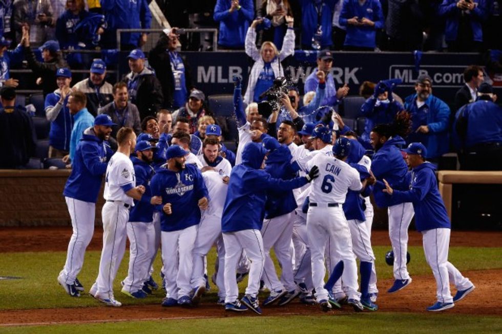 KANSAS CITY, Mo. (AP) — Alex Gordon hit a tying home run with one out in the ninth inning, Eric Hosmer hit a sacrifice fly against Bartolo Colon in the 14th and the Kansas City Royals beat the New York Mets 5-4 Tuesday night in the longest opener in World Series history.