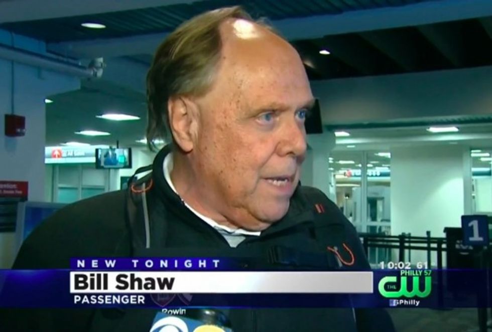 Bill Shaw told KYW he was seated in first class when he witnessed the man pacing up and down the aisle and "being very hostile to people with money."