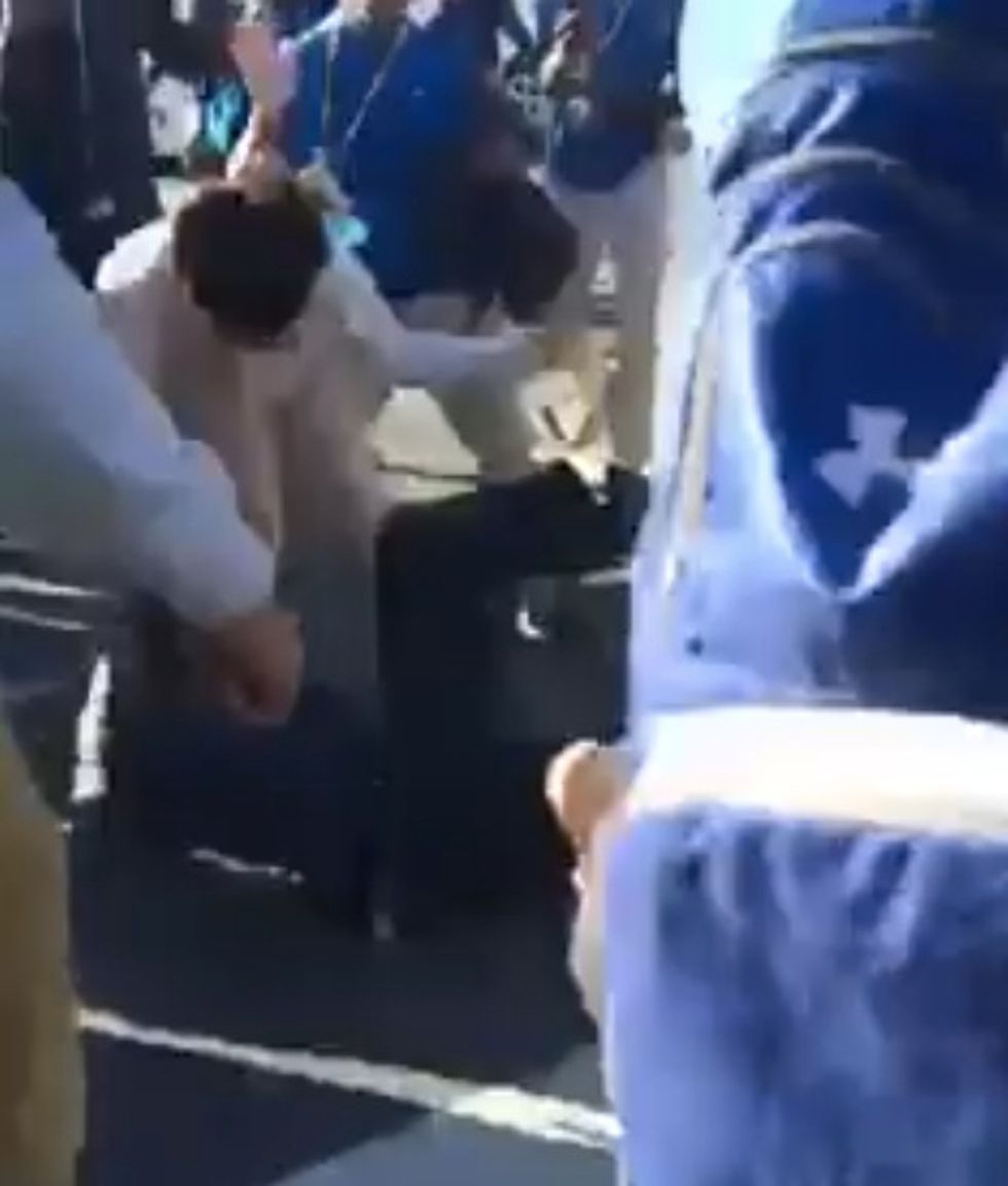 Here's the cellphone clip that was posted to Facebook. (Content warning: Strong language):