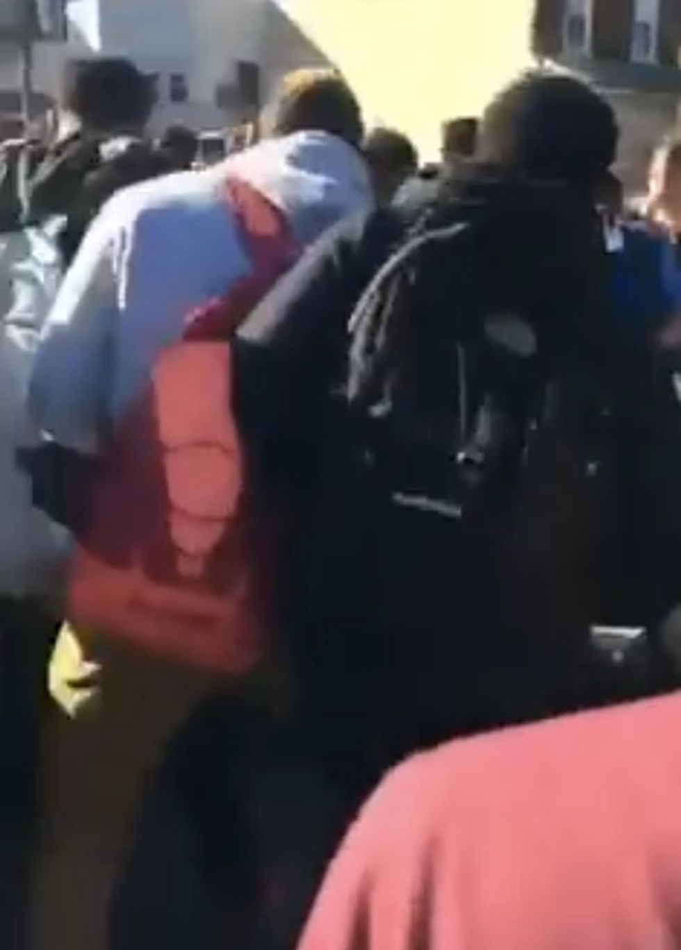 Student Caught on Video Pummeling Cop While Crowd Roars During Massive After-School Brawl That Injured Four Officers as Up to 200 Students Gathered