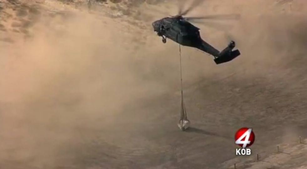 The National Guard helped airlift the fossils to the museum this week. (Image source: KOB-TV