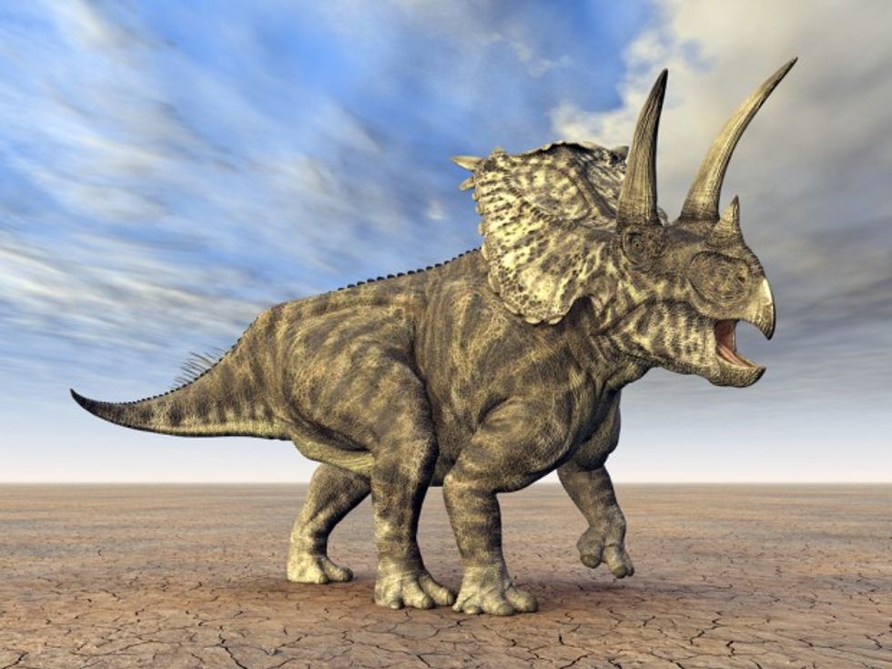 Pentaceratops, its head decorated with five horns, lived about 70 million years ago. Paleontologists suspect these rhinoceros-like dinosaurs may have used their horns for defense, but evidence also suggests that the horns and the shield-like part of the skull could have been used to attract mates. It's also thought they traveled in herds.