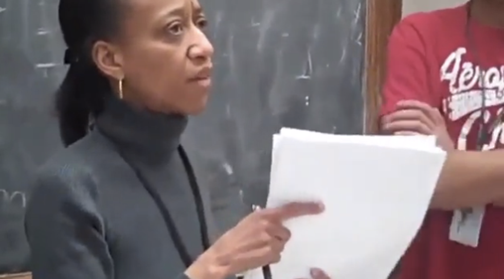 In the video, obtained by the Daily Mail, a black male student walks around the classroom lifting furniture and yelling at the teacher. The small black female teacher, whom the students referred to as Ms. Cox, simply remains despondent throughout the video and appears visibly weary.