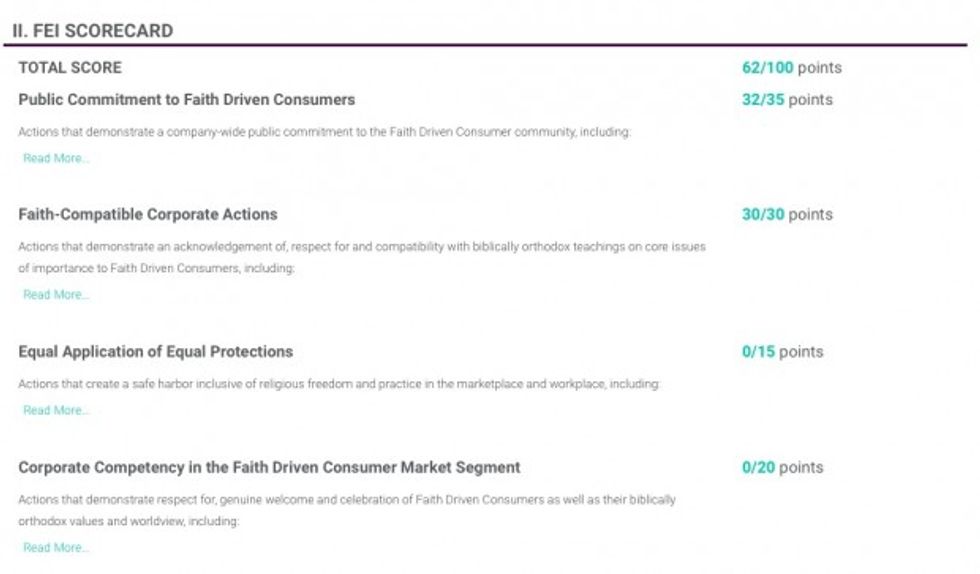 "Faith Driven Consumers want America’s brands to include them at parity with their other prioritized communities," Stone told TheBlaze. "The Faith Equality Index provides a transparent baseline for both brands and consumers to measure the relative degree which brands choose to engage Faith Driven Consumers and allow [them] to steward their spending by preferring companies that welcome, embrace and celebrate them."