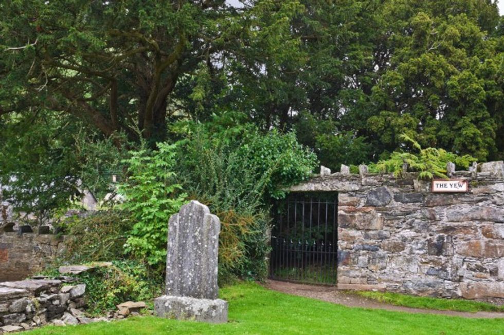 The Fortingall Yew is surrounded by a stone wall to protect it from tourists. (Photo credit: Shutterstock)