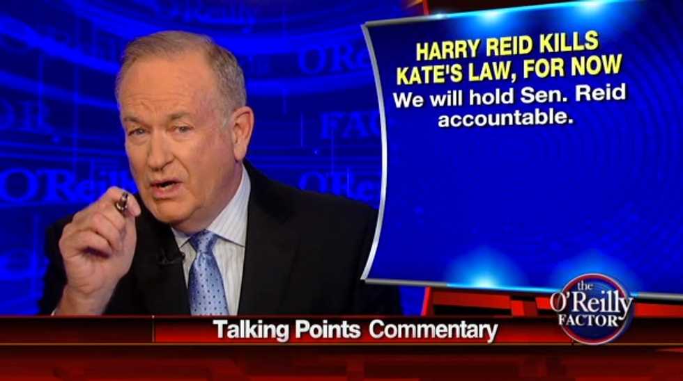 Fox News host Bill O'Reilly blasted Democratic Senate Minority Leader Harry Reid on his program Wednesday for blocking a vote on "Kate's Law."