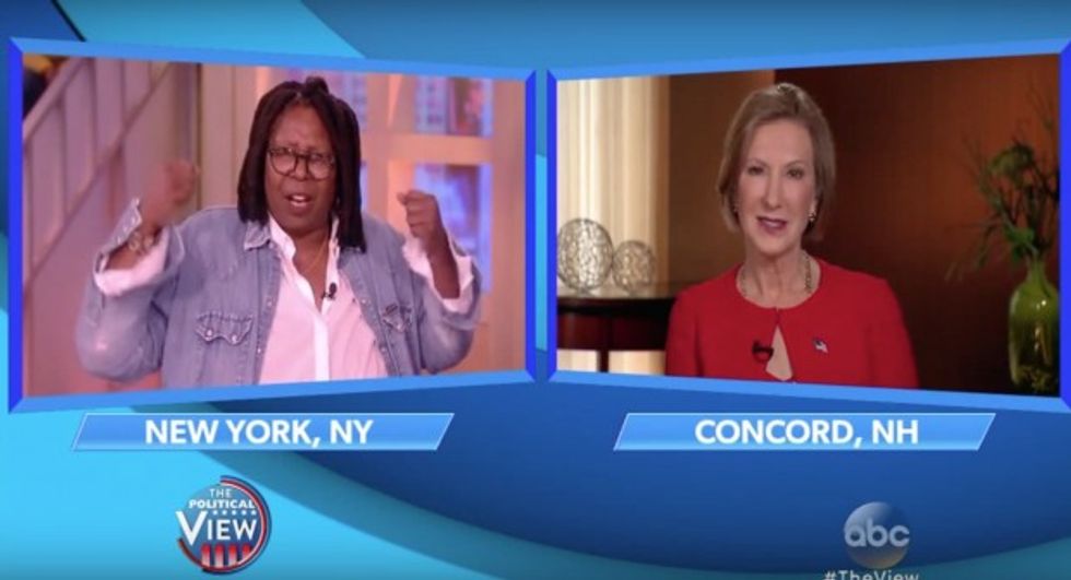 Whoopi Goldberg waded into the topic by asking Fiorina how she would get a “thicker skin” to “accept some of the humorous things that will be said” about her.