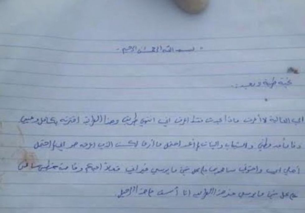 A Palestinian woman killed as she was approaching Israeli security guards while holding a knife Monday said in an apparent suicide note that she was carrying out her violent act “with a clear head.”