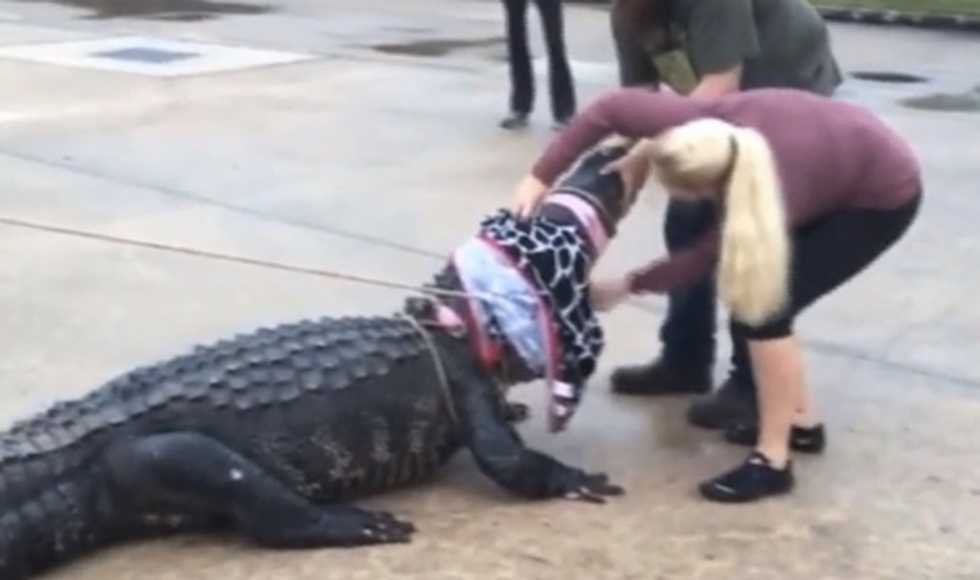 A massive 800-pound alligator that wandered into the parking lot of a mall outside of Houston was no match for Christy Kroboth, the petite dental hygienist who also doubles as a gator wrangler for the local wildlife office.